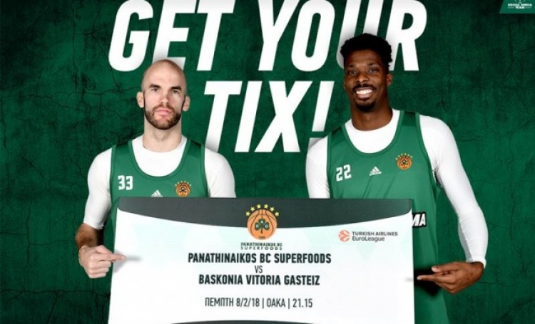 Η ΚΑΕ Παναθηναϊκός Superfoods ενημερώνει πως συνεχίζεται η διάθεση των εισιτηρίων για την μοναδική εντός έδρας αναμέτρηση της ομάδας μας στη Euroleague για τον μήνα Φεβρουάριο με αντίπαλο την Μπασκόνια (8/2, 21.15) καθώς και για τους υπόλοιπους αγώνες της κανονικής περιόδου της διοργάνωσης, που θα λάβουν χώρα στο ΟΑΚΑ.