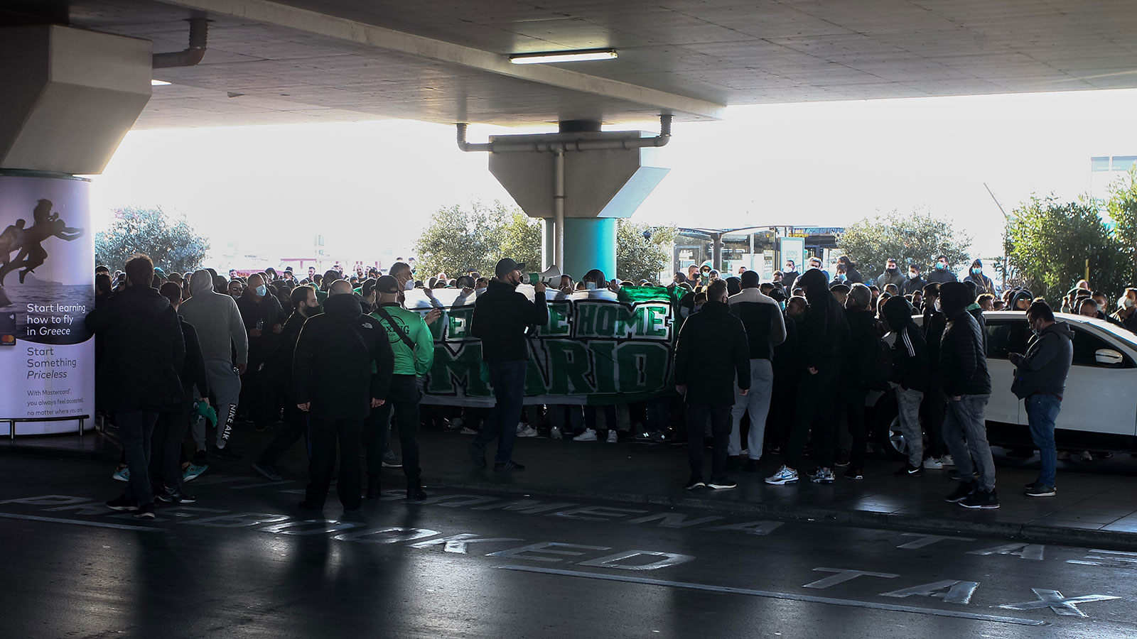 Έπειτα ο Μάριο Χεζόνια κατευθύνθηκε προς το σημείο που ήταν μαζεμένοι οι οπαδοί του Παναθηναϊκού και αφού γνώρισε για μία ακόμα φορά την αποθέωση, ανταπέδωσε και στη συνέχεια επιβιβάστηκε στο αυτοκίνητο με το οποίο αποχώρησε από το αεροδρόμιο.