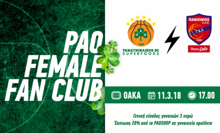 «Στο πλαίσιο της σημερινής Παγκόσμιας Ημέρας της Γυναίκας (διεθνής ημέρα των δικαιωμάτων των γυναικών), η ΚΑΕ Παναθηναϊκός Superfoods θέλοντας να τιμήσει τις γυναίκες, ανακοινώνει ειδικά προνόμια για τις φιλάθλους της ομάδας μας στον κυριακάτικο αγώνα με τον Πανιώνιο Βίκος Cola (11/3, 17.00) στο ΟΑΚΑ.