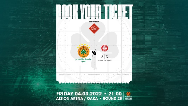 Η ΚΑΕ Παναθηναϊκός ΟΠΑΠ ενημερώνει τους φιλάθλους της πως συνεχίζεται η προπώληση των εισιτηρίων για την αναμέτρηση με την AX Armani Exchange Milan (4/3, 21.00).