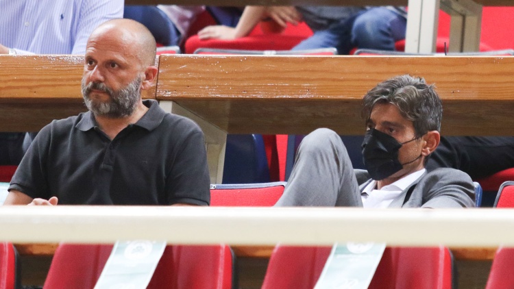 Στο κλειστό του ΟΑΚΑ για να παρακολουθήσουν τον 5ο ημιτελικό ανάμεσα στον Παναθηναϊκό και την Λάρισα βρίσκονται ο Δημήτρης Γιαννακόπουλος και ο Δημήτρης Ιτούδης.