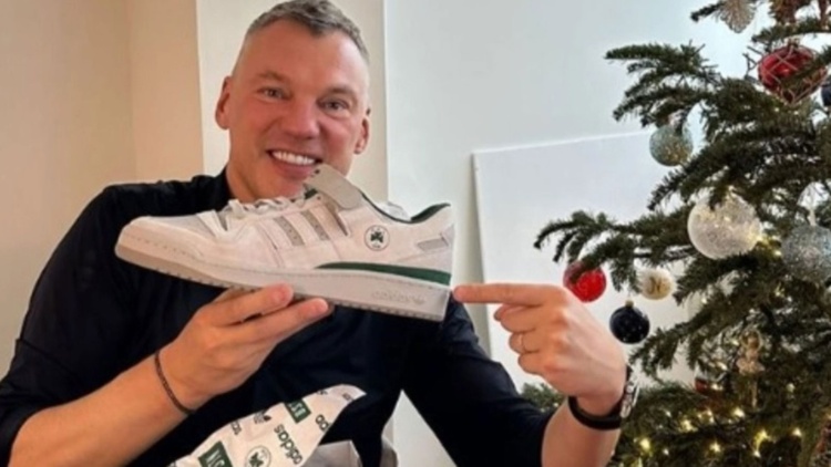Τα παπούτσια του Παναθηναϊκού που πρόσφατα λάνσαρε η Adidas είναι το χριστουγεννιάτικο δώρο που πήρε ο πανευτυχής, Σαρούνας Γιασικεβίτσιους.