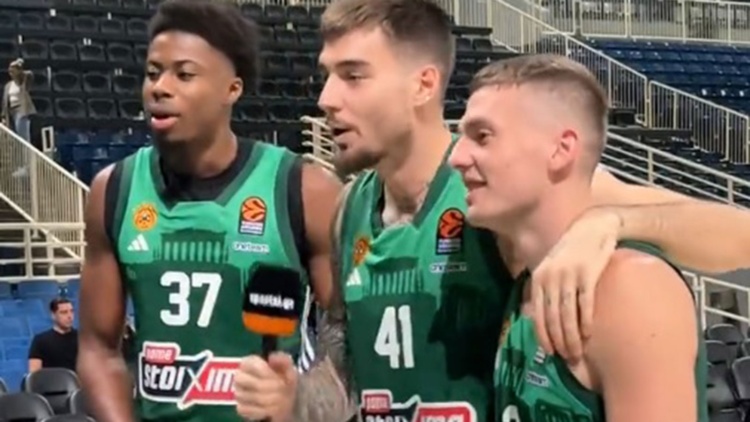 Οι Χουάντσο Ερνάνγκομεθ, Κάιλ Γκάι και Κώστας Αντετοκούνμπο στάθηκαν μπροστά στην κάμερα και με το μικρόφωνο ανά χείρας τραγούδησαν τον ύμνο του Παναθηναϊκού. Όπως είναι φυσικό το κλίμα ήταν ιδιαίτερα ευχάριστο, με τα γέλια ανάμεσα στους τρεις παίκτες να είναι ασταμάτητα.