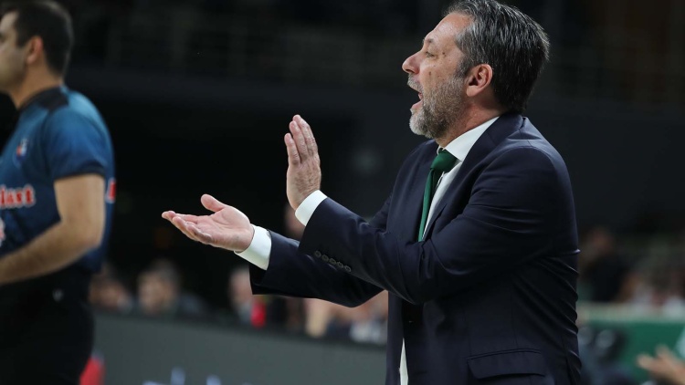 «Καταρχάς να εκφράσουμε και πάλι όλοι στην ομάδα τα συλλυπητήρια στον κόουτς Αταμάν και στην οικογένειά του. Συγχαρητήρια στο Περιστέρι που έχει κάνει μία τεράστια πρόκριση για το ελληνικό μπάσκετ κι εύχομαι την άλλη βδομάδα τα καλύτερα στο Final Four. Μετά τη νίκη με τον Ολυμπιακό και λίγο πριν τα πλέι οφ περιμέναμε ότι θα έχουμε σήμερα δύσκολο παιχνίδι. Ξέραμε ότι το Περιστέρι είναι πολύ δυναμικό στην άμυνά του. Έχει παίκτες που μπορούν να παίξουν πολύ καλά καταστάσεις iso κι αθλητικούς ψηλούς. Περιμέναμε δύσκολο παιχνίδι. Δυστυχώς δεν ήμασταν καλοί στην επίθεσή μας στο πρώτο ημίχρονο. Κάναμε 12 πολύ φθηνά λάθη και δώσαμε την ευκαιρία στο Περιστέρι να σκοράρει 21 πόντους στο πρώτο ημίχρονο από λάθη δικά μας. Είναι ένα νούμερο ανεπίτρεπτο για μία ομάδα σαν τη δική μας και δεν μπορεί να υπάρχει σε επίπεδο ομάδας Α1 για το πρώτο ημίχρονο. Στο δεύτερο ημίχρονο ήμασταν καλύτεροι και αμυντικά και επιθετικά, δεν κάναμε πάρα πολλά λάθη, αλλά προφανώς το παιχνίδι είχε πάρει τον δρόμο του, φαινόταν ότι θα είναι ένα κλειστό ματς, το οποίο θα κρινόταν στις λεπτομέρειες. Νομίζω το κομβικό κομμάτι είναι αυτό που παίζει ο Μήτογλου στο "5" και ο Παπαπέτρου στο "4" κι εκεί παίρνουμε διαφορά και στο τέλος το ματς. Αν και επανήλθε το Περιστέρι, δείχνοντας και πάλι την ποιότητά του και μας ισοφάρισε. Με βάση το γεγονός πως αυτό τον καιρό έχουμε αρκετά μικρά προβλήματα, ευτυχώς κανένα μεγάλο, και περιμένουμε από αύριο την ομάδα να είναι έτοιμη και όλοι στις προπονήσεις, το μυαλό μας στρέφεται στα πλέι οφ και τα παιχνίδια με τη Μακάμπι. Η ομάδα θέλει πάρα πολύ αυτή την πρόκριση, έχει δουλέψει πάρα πολύ όλο τον χρόνο. Μοχθήσαμε πολύ για να έρθουμε σε αυτή τη θέση και θα δώσουμε τα πάντα για να βρεθούμε στο Final Four».