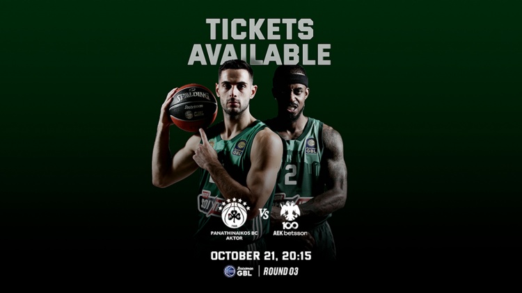 Η ΚΑΕ Παναθηναϊκός AKTOR ενημερώνει τους φιλάθλους της πως ξεκίνησε η διάθεση των εισιτηρίων για την αναμέτρηση κόντρα στην ΑΕΚ Betsson, τη Δευτέρα 21 Οκτωβρίου και ώρα 20:15, στο πλαίσιο της 3ης αγωνιστικής της Stoiximan GBL.
