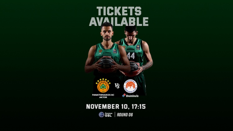 «Η ΚΑΕ Παναθηναϊκός AKTOR ενημερώνει πως τέθηκαν στη διάθεση των φιλάθλων της τα εισιτήρια για την εντός έδρας αναμέτρηση απέναντι στο Περιστέρι Domino’s, την Κυριακή 10 Νοεμβρίου (17:15), για την 6η αγωνιστική της Stoiximan GBL.