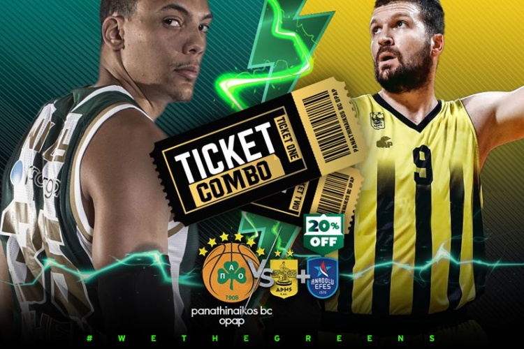 Η ΚΑΕ Παναθηναϊκός ΟΠΑΠ ενημερώνει τους φιλάθλους της πως τέθηκαν σε κυκλοφορία τα εισιτήρια της Σαββατιάτικης εντός έδρας αναμέτρησης με τον Άρη (26/10, 19.00) για την 5η αγωνιστική του πρωταθλήματος της EKO Basket League. Σημειώνεται πως όποιος αγοράσει εισιτήριο για το ματς με το ματς με τον Άρη, θα έχει 20% έκπτωση στην αγορά του εισιτηρίου του για τον αγώνα με την Anadolu Efes (31/10, 21.00).