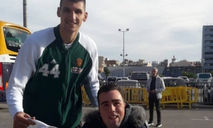Μία ευχάριστη έκπληξη περίμενε έναν φίλαθλο της Μπαρτσελόνα που αγαπά τον Παναθηναϊκό, ο οποίος υπέμενε καρτερικά έξω από το γήπεδο όπου πραγματοποιούνταν η προπόνηση του «τριφυλλιού» για να συναντήσει και να φωτογραφηθεί με τους παίκτες.