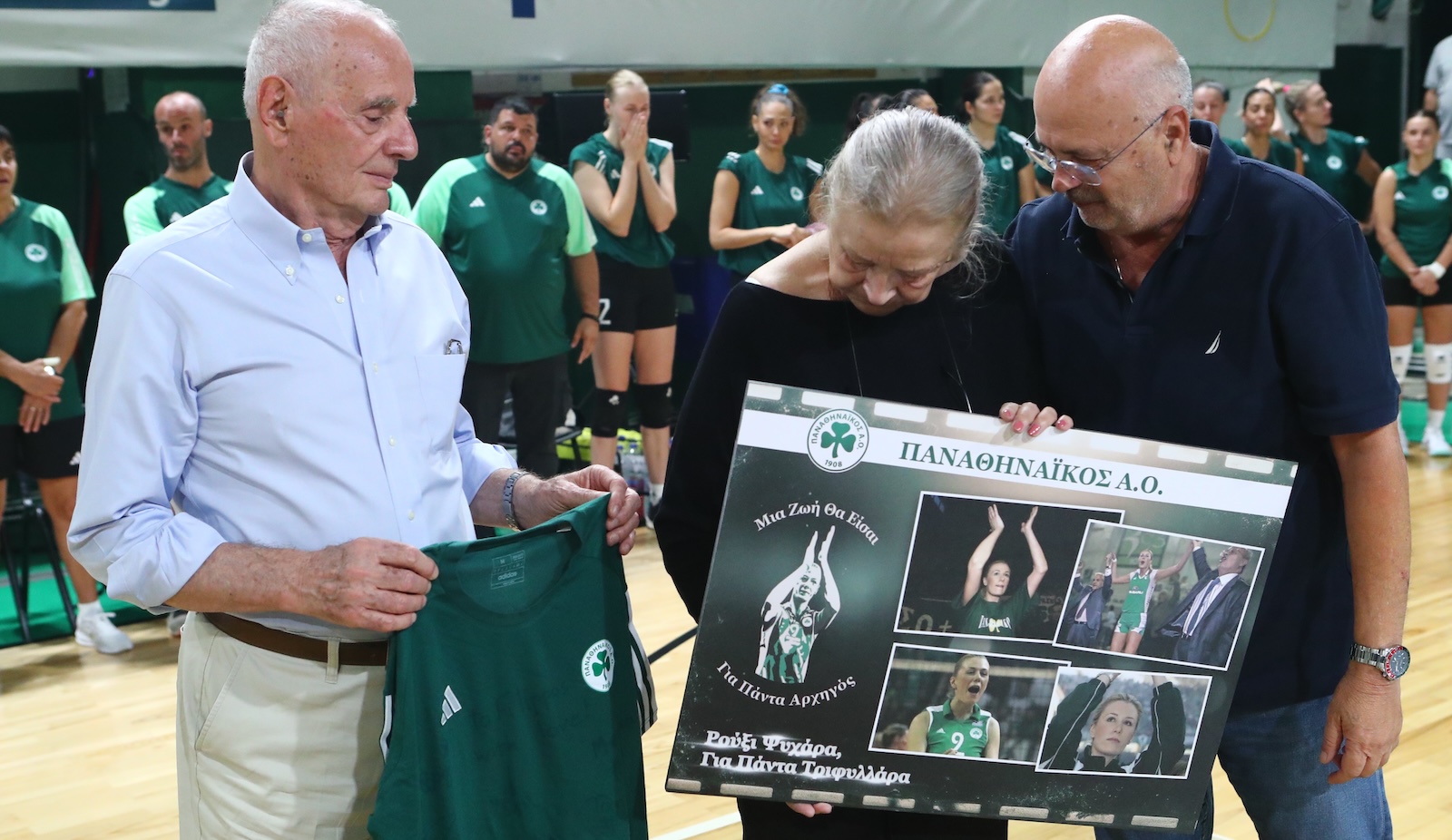 Το «τριφύλλι» πριν από την έναρξη του φιλικού με τα Βριλήσσια, τίμησε την εμβληματική αρχηγό του, η οποία έφυγε πολύ νωρίς από τη ζωή, αποσύροντας τη φανέλα της. Μία φανέλα, την οποία κατά τη διάρκεια της καριέρα της τίμησε όσο ελάχιστες παίκτριες.