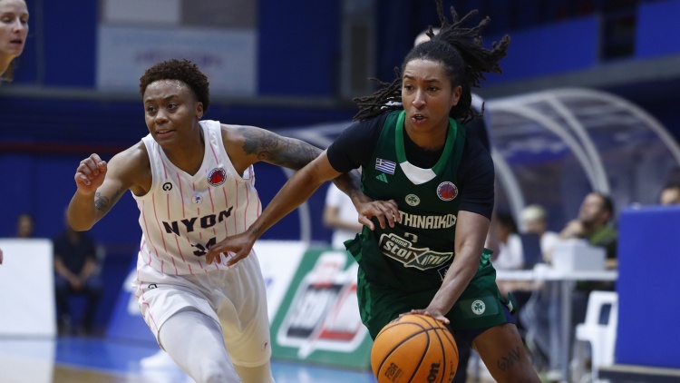 Στο πρώτο τετράλεπτο του αγώνα ο Παναθηναϊκός βρέθηκε πίσω στο σκορ με 10-15, καθώς η άμυνα των «πρασίνων» είχε επιτρέψει το μακρινό σουτ στις Ελβετίδες, οι οποίες ξεκίνησαν με 3/3 τρίποντα και τη Φόρμαν στους 8 πόντους. Η άμυνα του «τριφυλλιού» συνέχισε να παρουσιάζει προβλήματα, κυρίως σε καταστάσεις 1vs1 και σχεδόν ξεκούραστα η Νιόν των 6/6 τριπόντων πήρε διψήφια διαφορά +15 (19-34 στο 8’). Το κακό πρώτο δεκάλεπτο, βρήκε τον Παναθηναϊκό στο -11 (26-37), με τις «πράσινες» να οδηγούνται στην επίθεση από το δίδυμο Φιτζέρλαντ (8π.)-Μπράουν (7π.), αλλά να προδίδονται από την κάκιστη άμυνα που έδωσε στη Νιόν 37 πόντους, 16 από τους οποίους δια χειρός Φόρμαν.