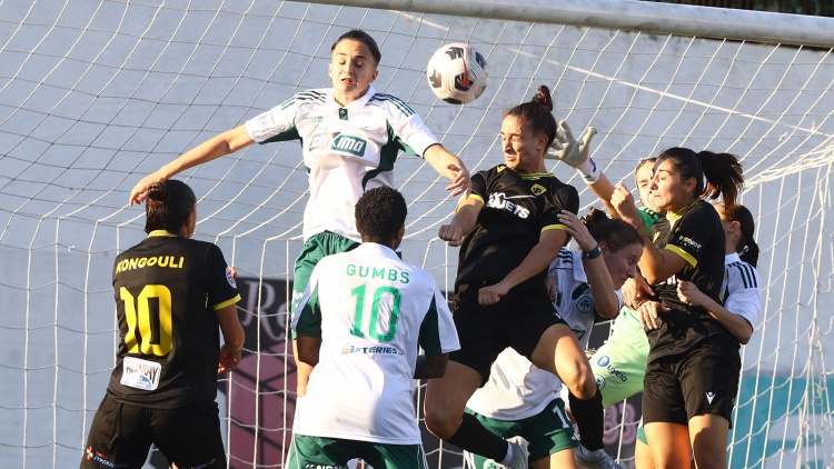 Στο δεύτερο ημίχρονο η ΑΕΚ πίεσε για την ισοφάριση, αλλά ο Παναθηναϊκός είχε την πρώτη μεγάλη στιγμή της επανάληψης. Στο 56’, η Καλαντάντζε πήρε την κεφαλιά μέσα από τη μεγάλη περιοχή, όμως η Γιαννακούλη μπλόκαρε.