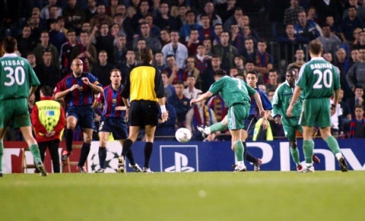 Ήταν 9/4/2002 όταν ο Παναθηναϊκός πήγε στο «Καμπ Νου» με στόχο να υπερασπιστεί το υπέρ του 1-0 από τον πρώτο αγώνα που είχε διαμορφωθεί με εύστοχη εκτέλεση πέναλτι του Άγγελου Μπασινά και να πάρει την πρόκριση για τα ημιτελικά του Τσάμπιονς Λιγκ.