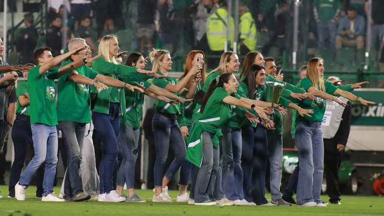 Τα «φίνα κορίτσια» στο ημίχρονο του αγώνα κόντρα στον Άρη, βρέθηκαν στον αγωνιστικό χώρο του «Απόστολος Νικολαΐδης» έχοντας στα χέρια τους το βαρύτιμο τρόπαιο. Όπως ήταν φυσικό, οι φίλοι του «τριφυλλιού» τις αποθέωσαν, ενώ με τη σειρά τους, οι παίκτριες του Ντράγκαν Νέσιτς ανταπέδωσαν το χειροκρότημα.