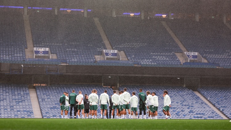 Οι «πράσινοι» του Ρουί Βιτόρια πάτησαν το χορτάρι υπό συνεχή βροχή και με θερμοκρασία μόλις 18°C, προσαρμοζόμενοι στις συνθήκες που θα επικρατούν πιθανότατα και κατά τη διάρκεια του αγώνα.