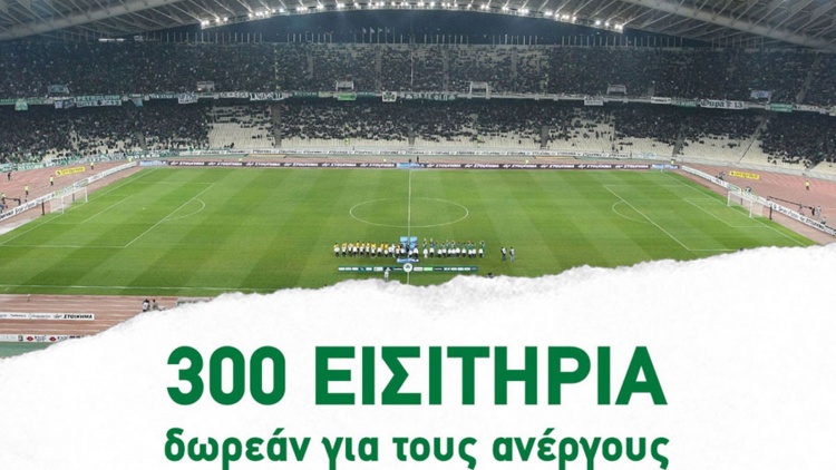 Σε μια πολύ όμορφη κίνηση προχώρησε η ΠΑΕ Παναθηναϊκός, η οποία ανακοίνωσε πως από το επερχόμενο παιχνίδι του Σαββάτου κόντρα στη Λαμία και για κάθε εντός έδρας ματς θα διαθέτει δωρεάν 300 εισιτήρια σε ανέργους φιλάθλους της.