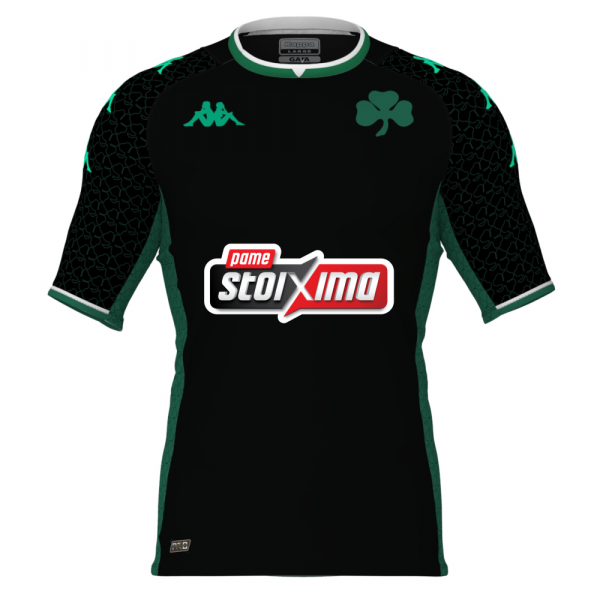 «Η επίσημη 3η εμφάνιση του Παναθηναϊκού 2021-22, Kappa Kombat Pro. Με θερμοκολλημένα λογότυπα, Τριφύλλι, τύπωμα “Πάμε Στοίχημα” και διακριτικά τριφύλλια. Διαθέτει τεχνολογία Hydro-Way Protection για απώθηση του ιδρώτα και αναπνοή του δέρματος Σε Skin Fit γραμμή και σύνθεση από 91% polyester και 9% elastane.»